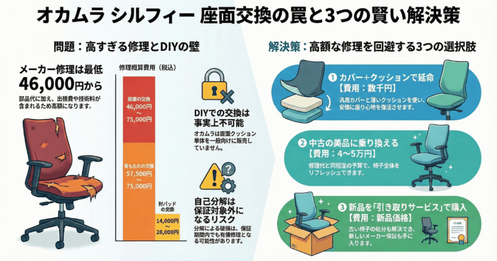 オカムラ シルフィー座面交換は4.6万円!高額費用を回避する3つの技