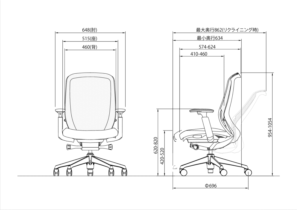 - 前傾・直立・後傾いずれでも姿勢が安定